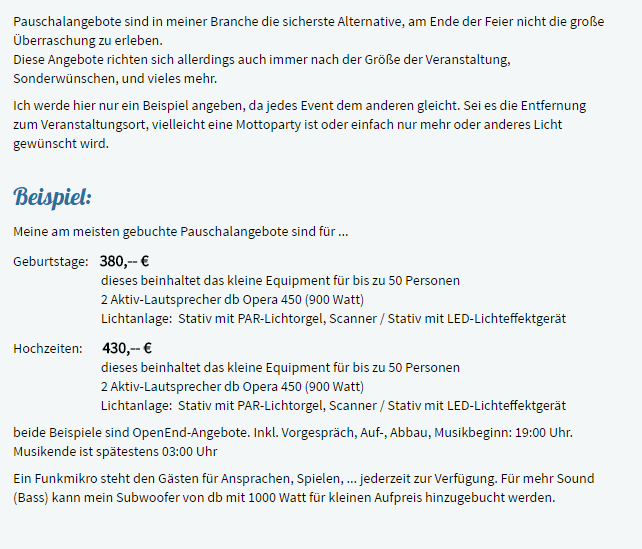 Durch meine Pauschalpreise gibt es kein Preis-wirr-war und ihr Event führt nicht zur Kostenexplosion!